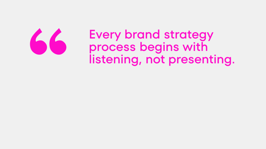 Every brand strategy process begins with listening, not presenting. This sounds obvious. It’s consistently ignored.