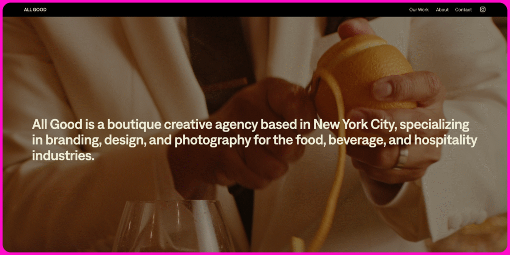 All Good NYC is a boutique creative agency based in Brooklyn, New York, specializing in branding, design, and content creation for the food, beverage, and hospitality industries. Founded in 2014, they’ve built a reputation for crafting visually rich identities and premium storytelling that resonate across physical and digital spaces.