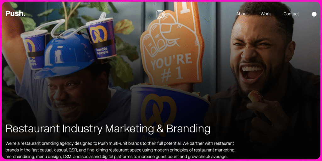 Push is a U.S.-based creative agency specializing in restaurant branding and marketing, with nearly 25 years of experience helping multi-unit restaurant brands grow across dine-in, carryout, drive-thru, and delivery channels.